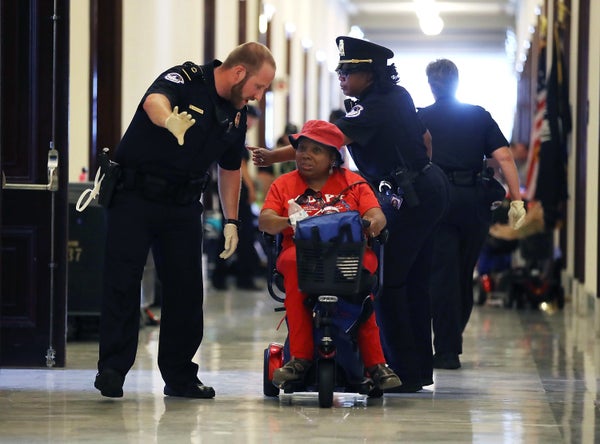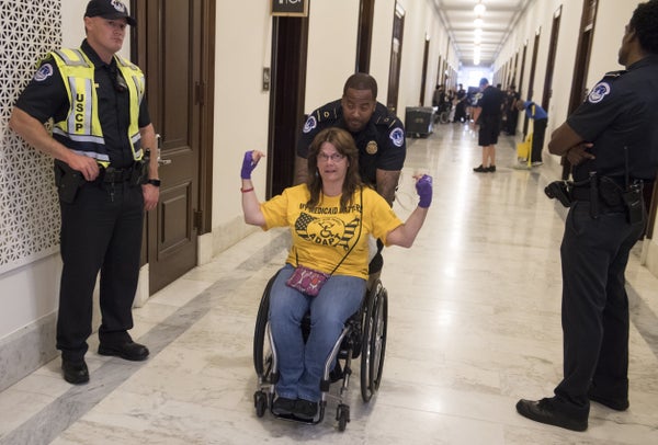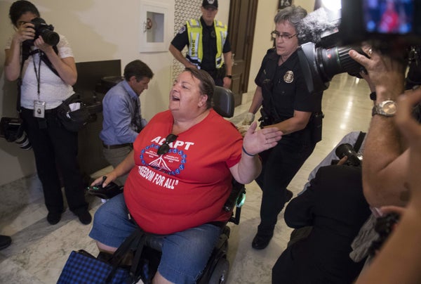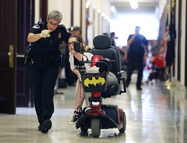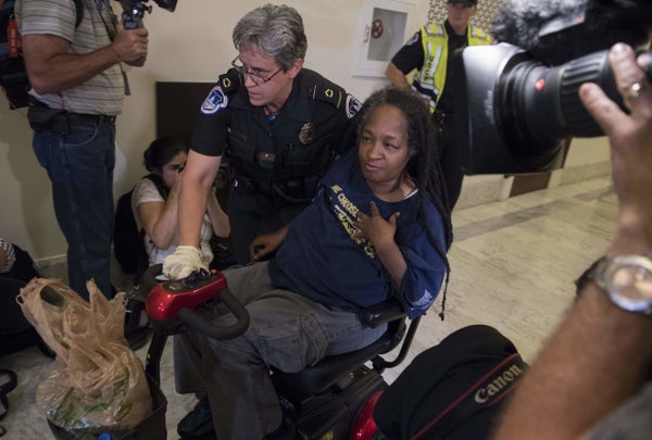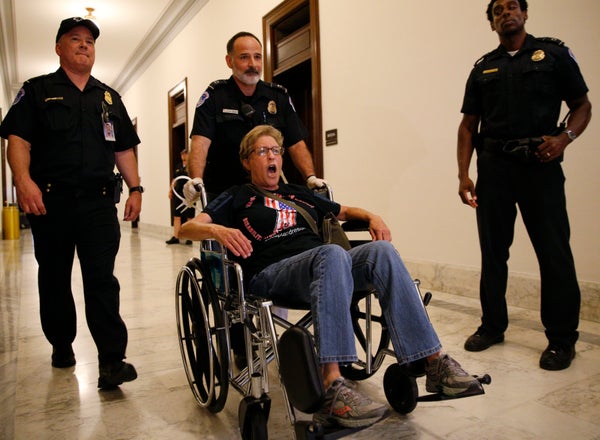Mark Wilson via Getty ImagesMembers of a group with disabilities were protesting the proposed GOP health care plan that was unveiled today. -