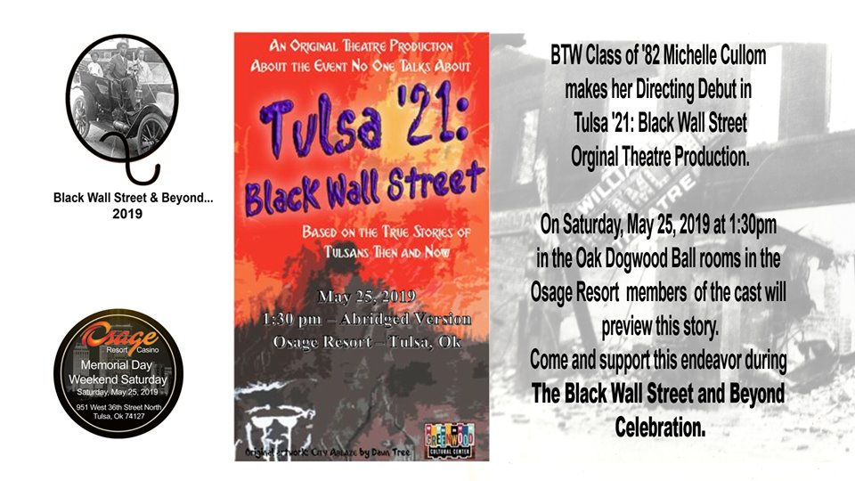 Booker T. Alumnus Michelle Cullom makes her debut in a bridge version of “Tulsa 21 Black Wall Street,” at 1:30 p.m.
