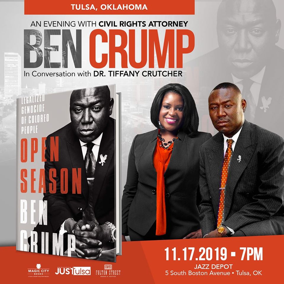 Demanding a JUSTulsa, in partnership with Fulton Street Books + Coffee and Magic City Books, will host an evening with civil rights attorney Ben Crump on Sunday, November 17 at 7pm at the Jazz Depot at 111 East 1st Street.