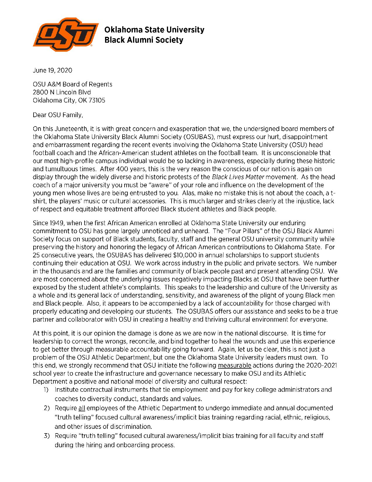 OSU Black Alumni Society Letter To OSU A&M Board Of Regents June 22, 2020 The Oklahoma Eagle Newswire See Also Good trouble: Tulsans evoke John Lewis’ legacy to remain hopeful Homegoing Services For Ralph Sumers Smoote Wednesday First Baptist Church Tulsa At 12 Noon Previous Article Tulsa County Coronavirus Disease Update (COVID-19) Next Article