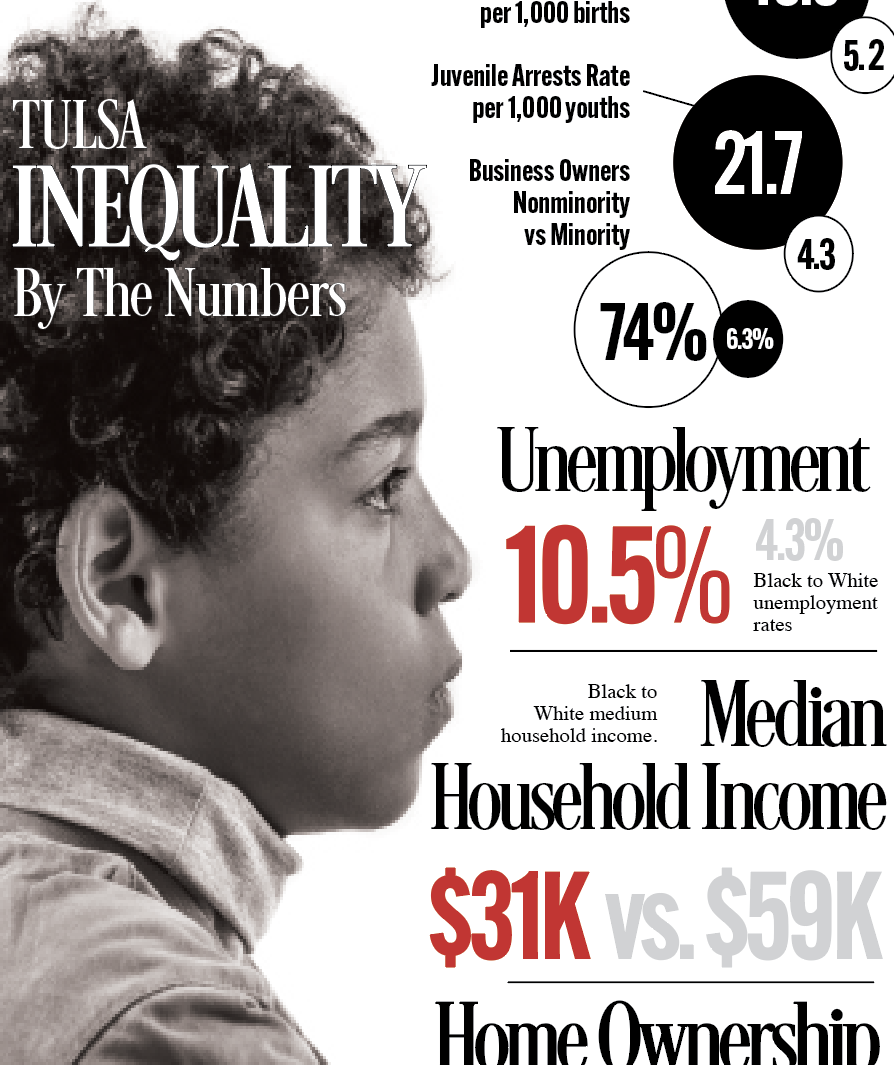 The city of Tulsa and the Community Service Council have released a report of “equality indicators” that depict bleak conditions for most Black Tulsans. The “Tulsa Equality Indicators Annual Report for 2021” shows Black Tulsans lagging in every measurement of wellbeing. The most startling areas of concern were the gap in income between Black and white households, the skyrocketing rates of infant mortality among Black Tulsans, and the poor record of criminal justice in the Black community.