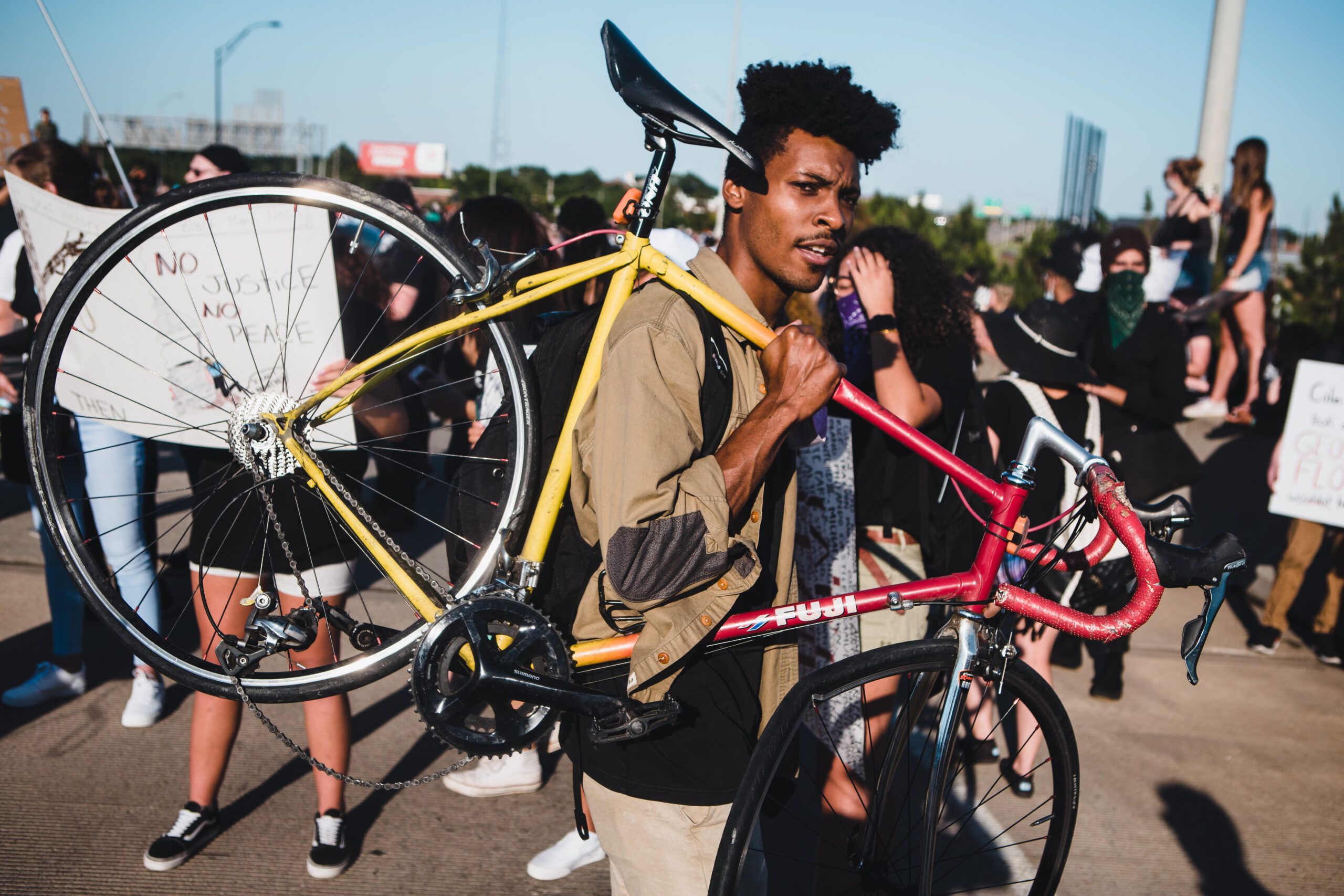 Local activist Kolby Webster’s bicycle was being struck by the truck driver. “When the driver started moving through the crowd and eventually running over someone’s ankle and my bike, it spoke volumes,” Webster wrote in a first-person account provided to The Oklahoma Eagle. “When trolls online empathized with horses and right-of-way laws over human lives, it spoke volumes. There is a level to it that I’m still processing and trying to come to terms with.”