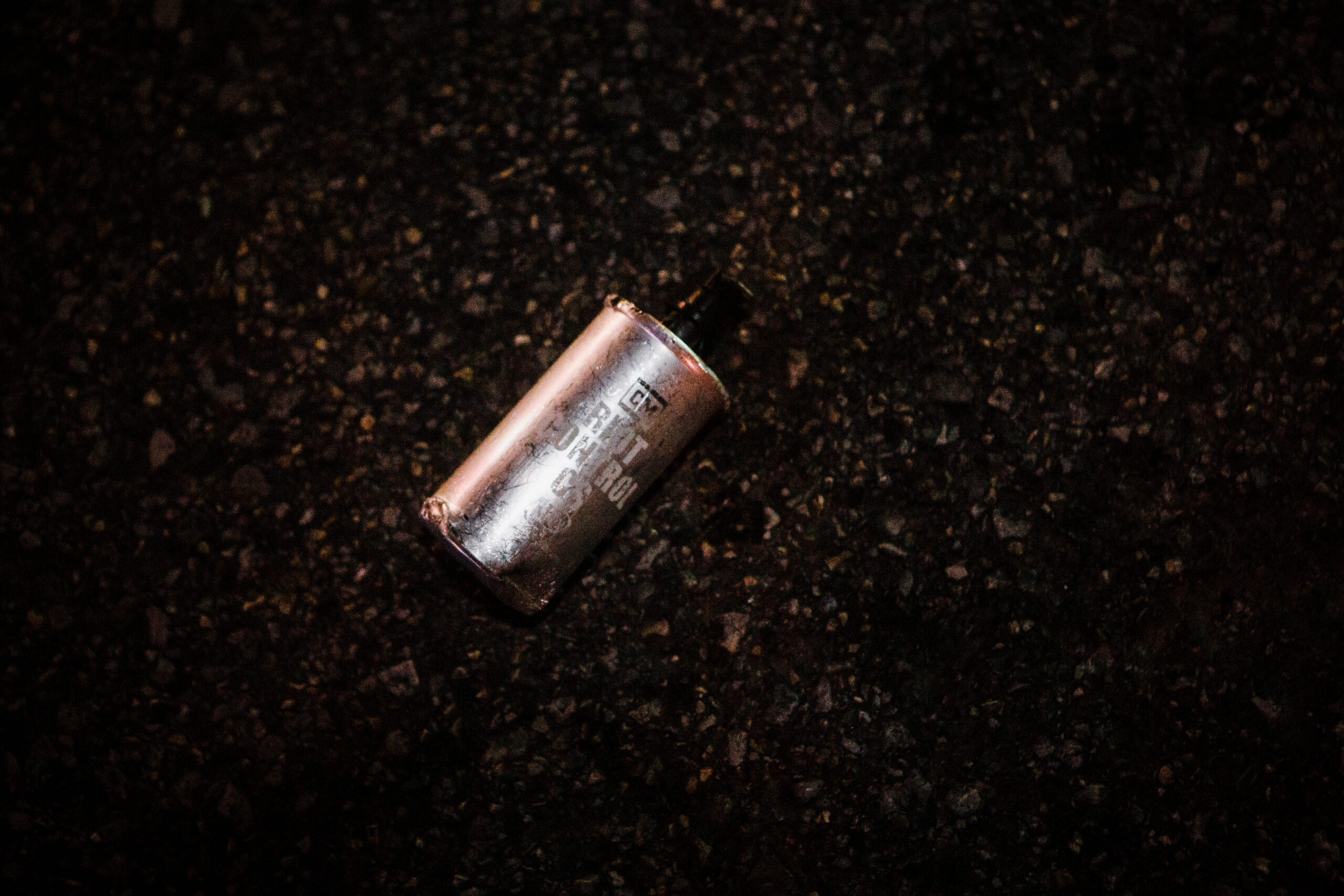 A tear gas canister deployed by Tulsa Police to disperse crowds along Peoria Avenue.